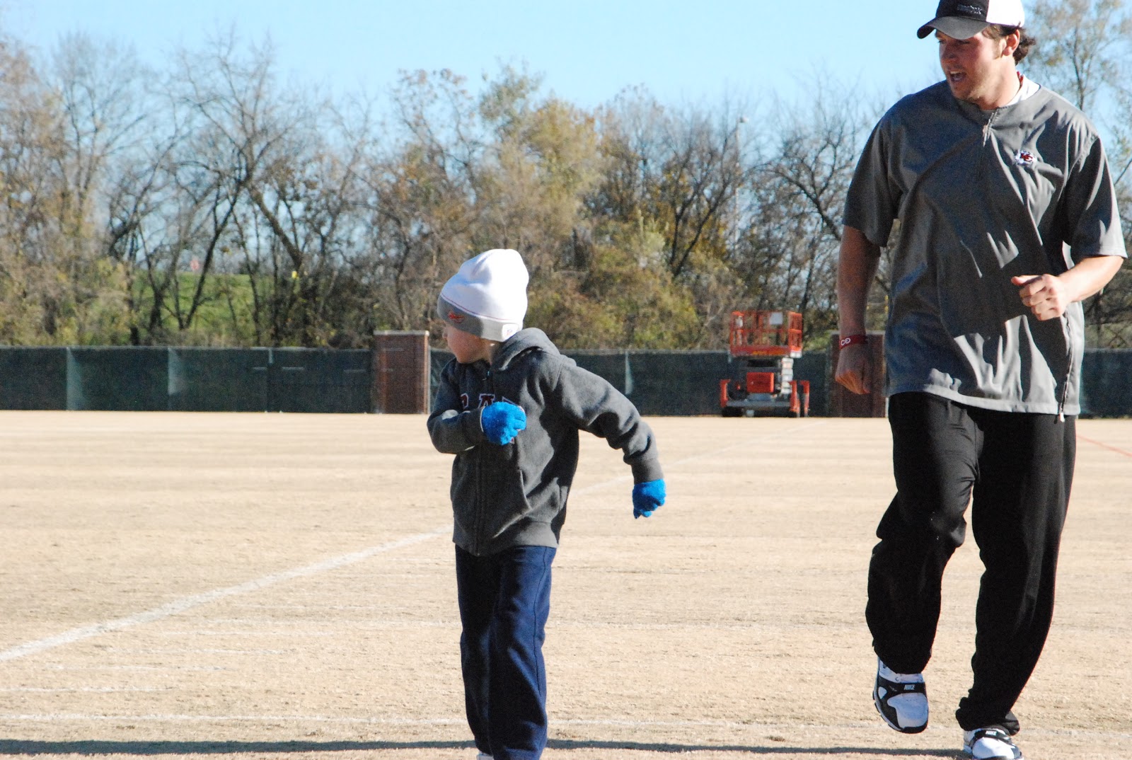 So the boys got to play with Matt Cassel, Jeremy (I so cannot recall his last name...he was receiver), and Tyler Palco (backup QB).