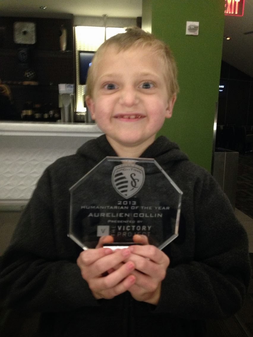 On Friday, we got a call from Sporting KC asking if Braden would come to their awards banquet and present the Humanitarian of the Year Award to Aurelien Collin.